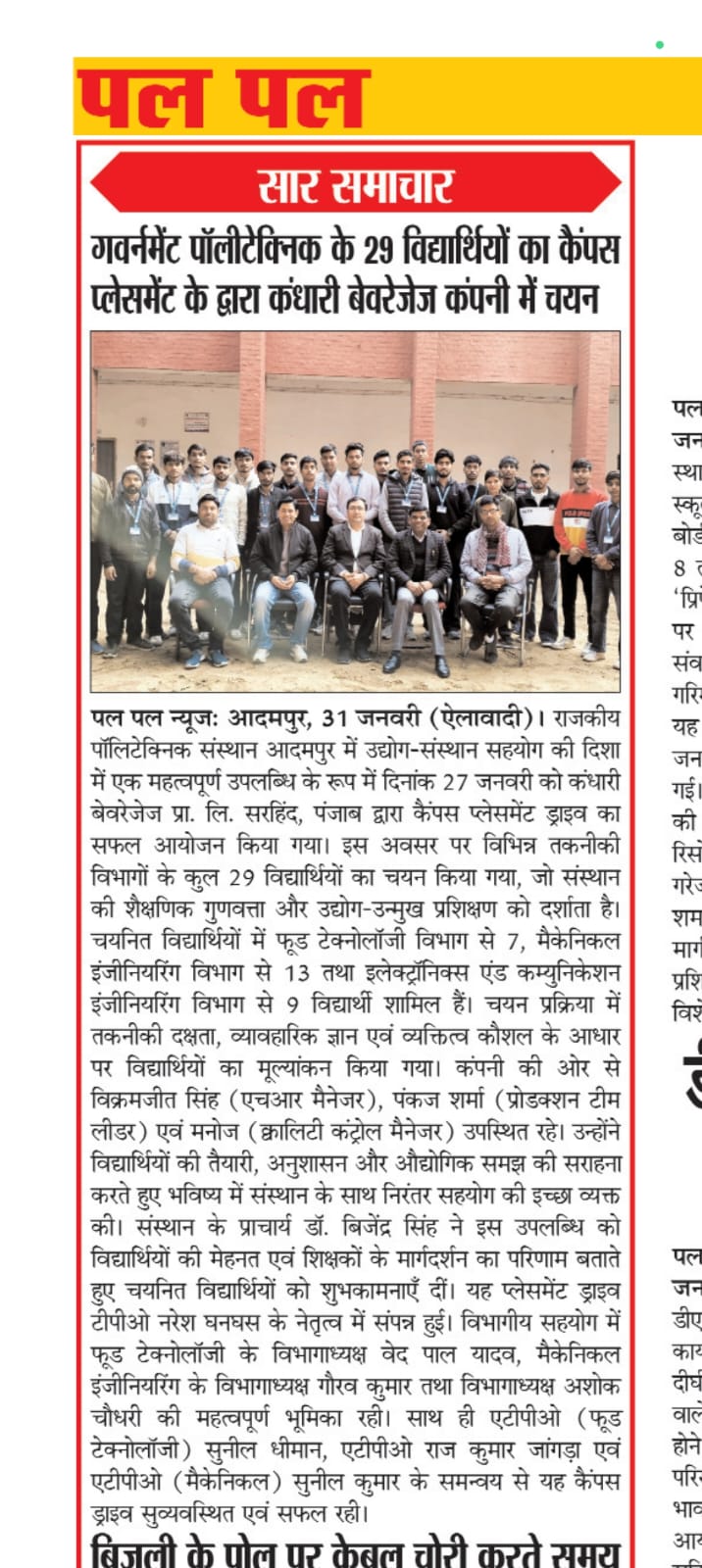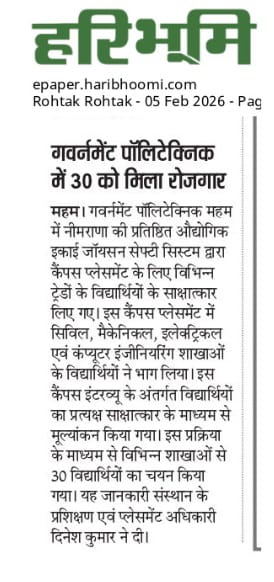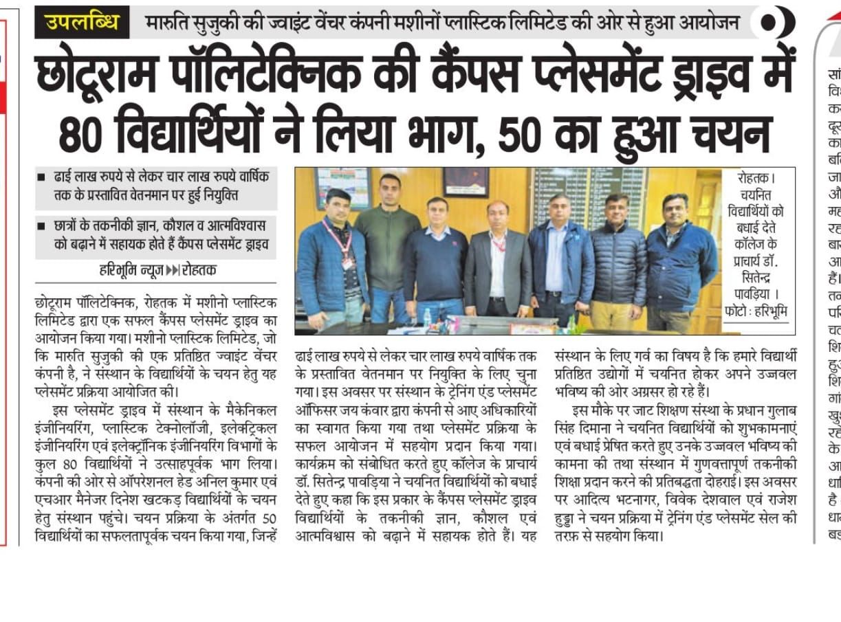161 Students Placed from Govt. Polytechnic Jhajjar